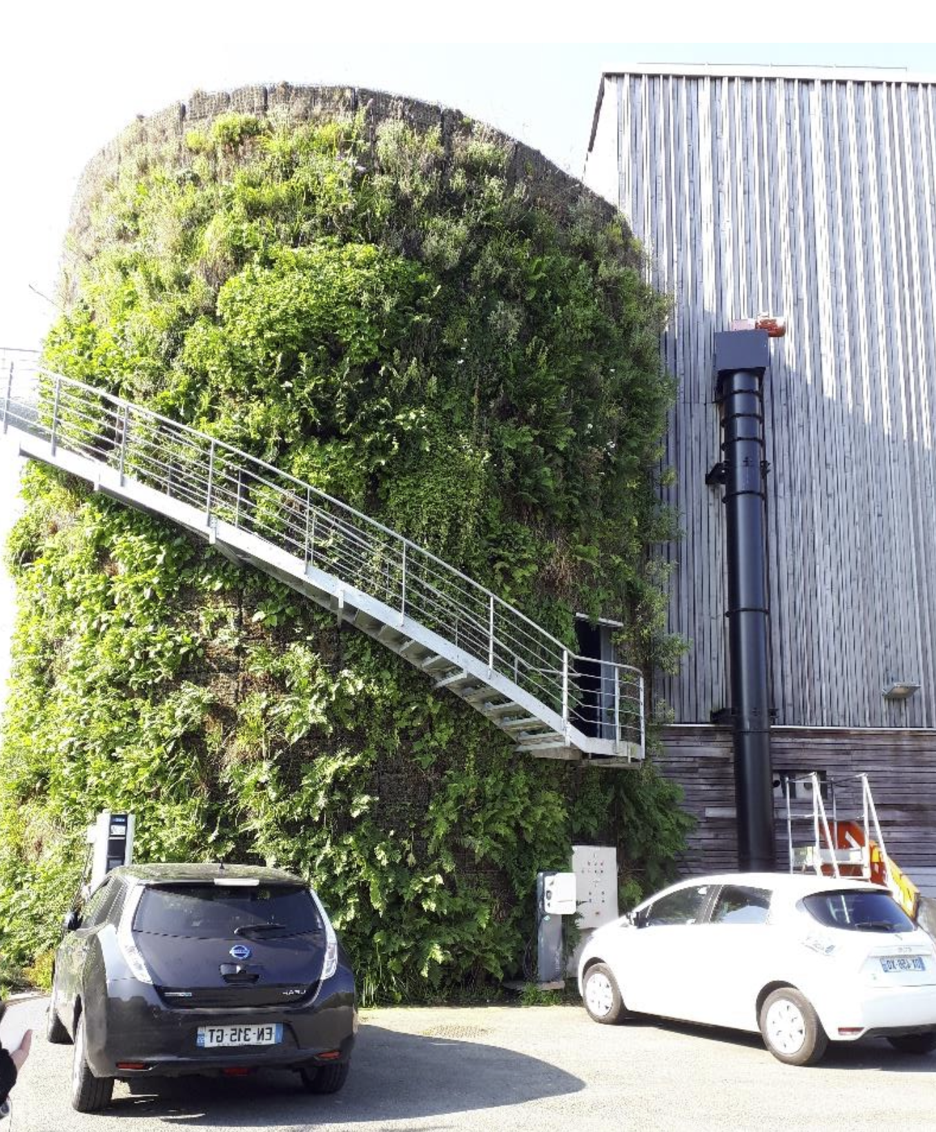 Tour végétalisée pour stockage d’eau pluviale + bornes de recharge.